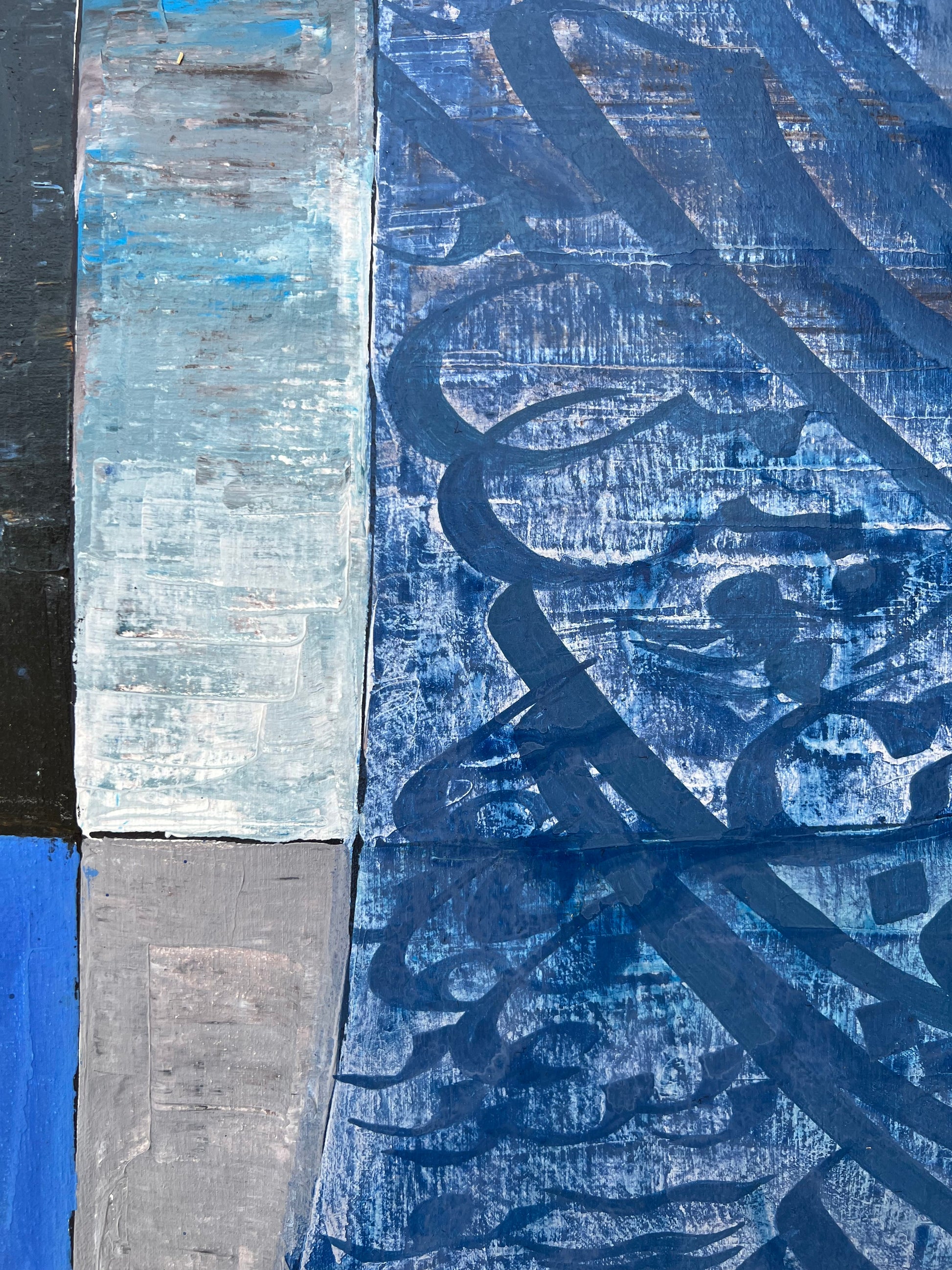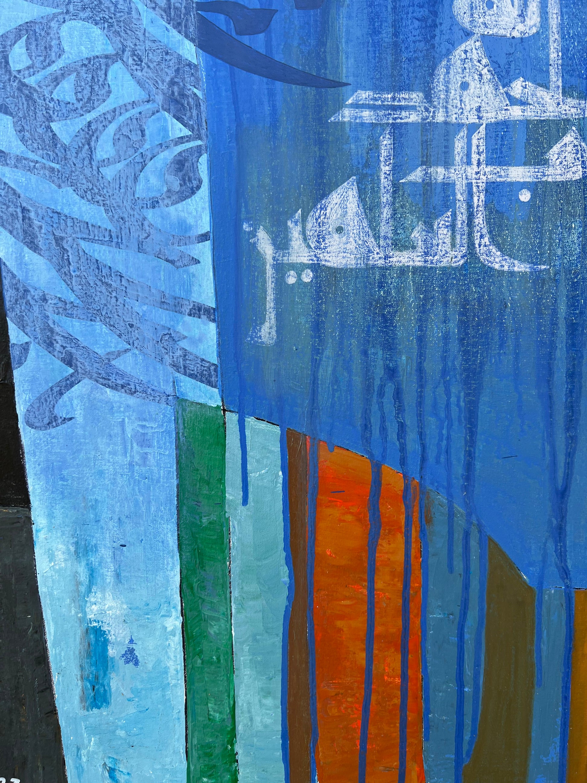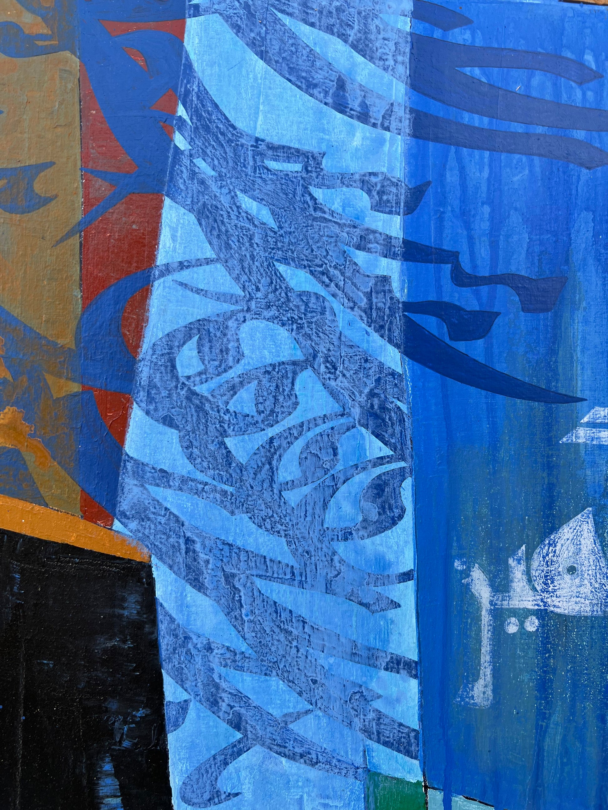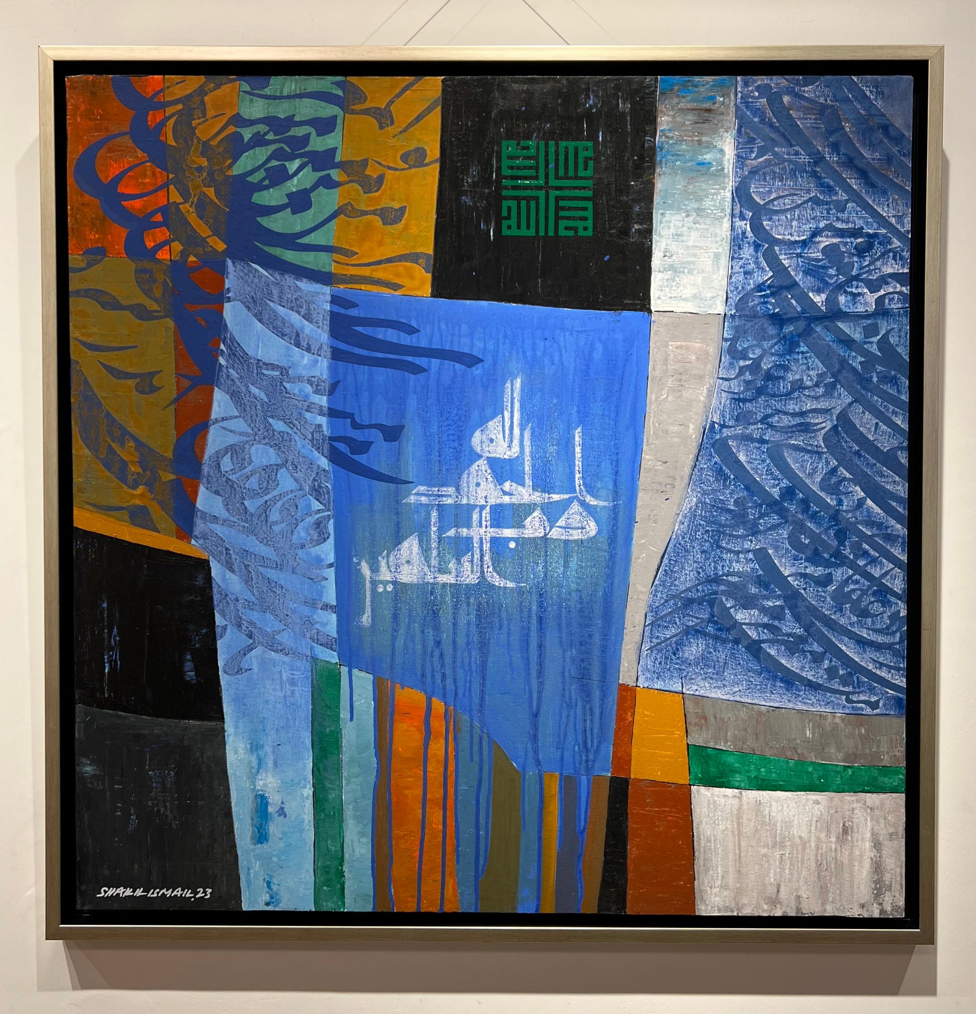 A symphony of colors invites you to bask in the pleasant ambiance this artwork emanates. The captivating calligraphy takes center stage, resonating with its powerful significance. The abstract background serves as a canvas of artistic freedom, beautifully harmonizing with the central script.