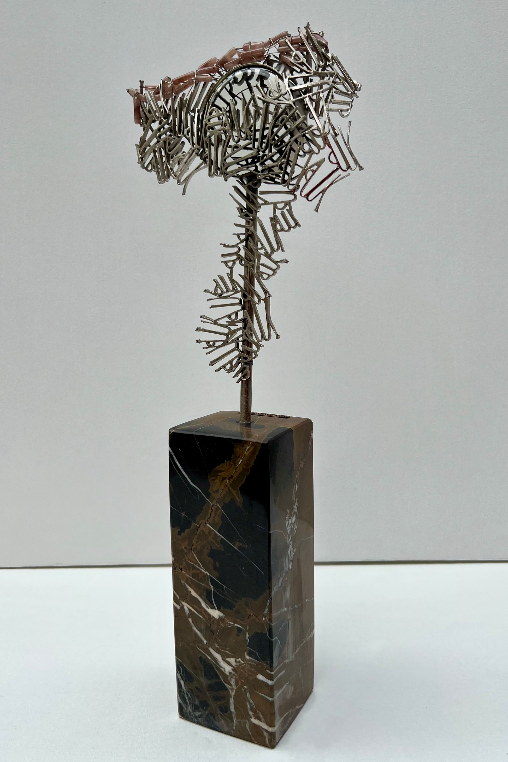 Resting gracefully on a marble base, the "Elegance Unveiled: Allah's Calligraphy Encompassed" sculpture exudes contemporary grandeur while maintaining a profound connection to divine symbolism. With its fusion of modernity and tradition, this sculpture invites you to explore the beauty that emerges when artistic innovation meets spiritual devotion.