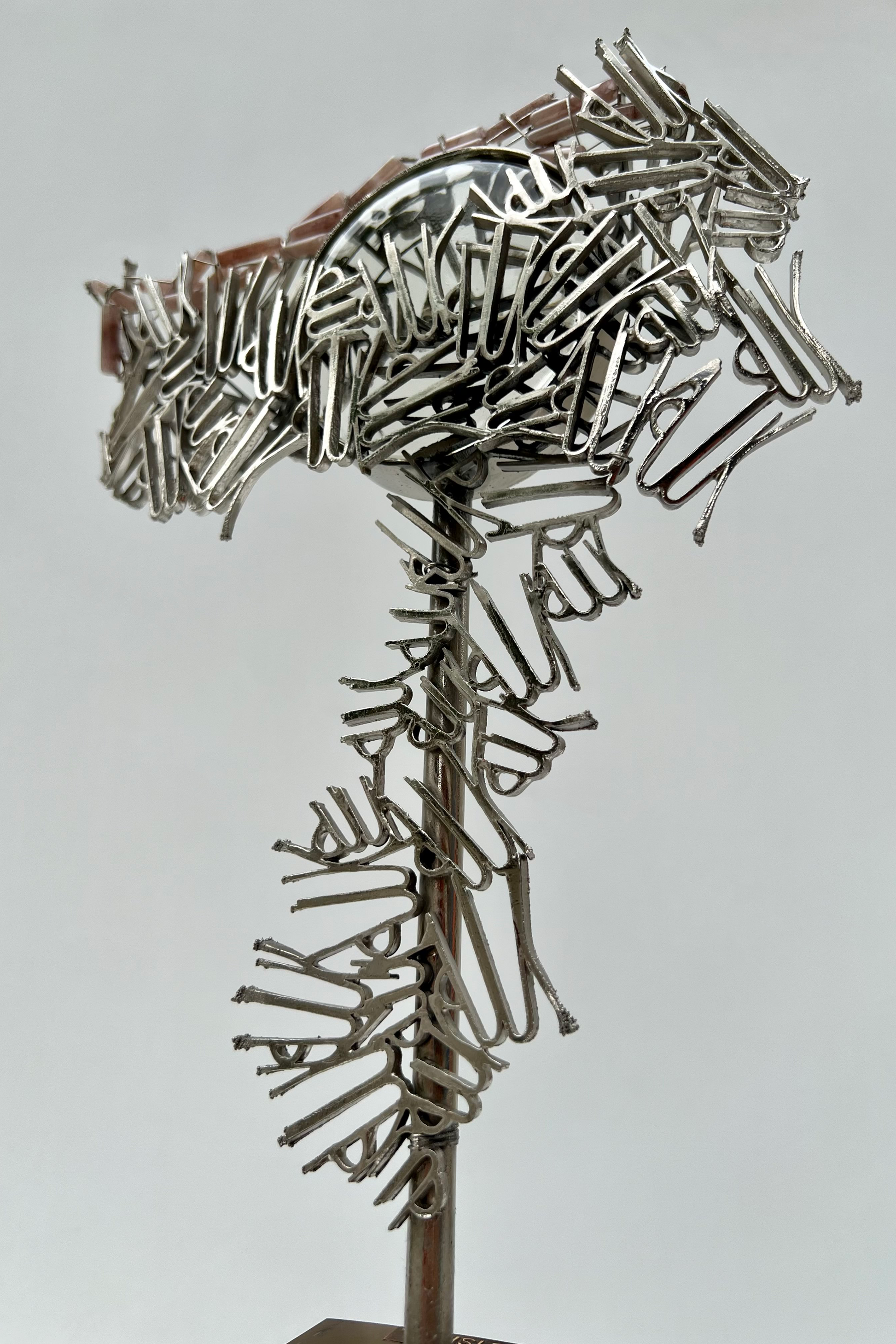 Witness art's evolution into a new era with the "Elegance Unveiled: Allah's Calligraphy Encompassed" sculpture by Shakil Ismail. A marvel of modern aesthetics and divine inspiration, this sculpture stands as a testament to the artist's mastery of innovation and tradition. Its sleek design and captivating composition are bound to ignite the admiration of art enthusiasts.