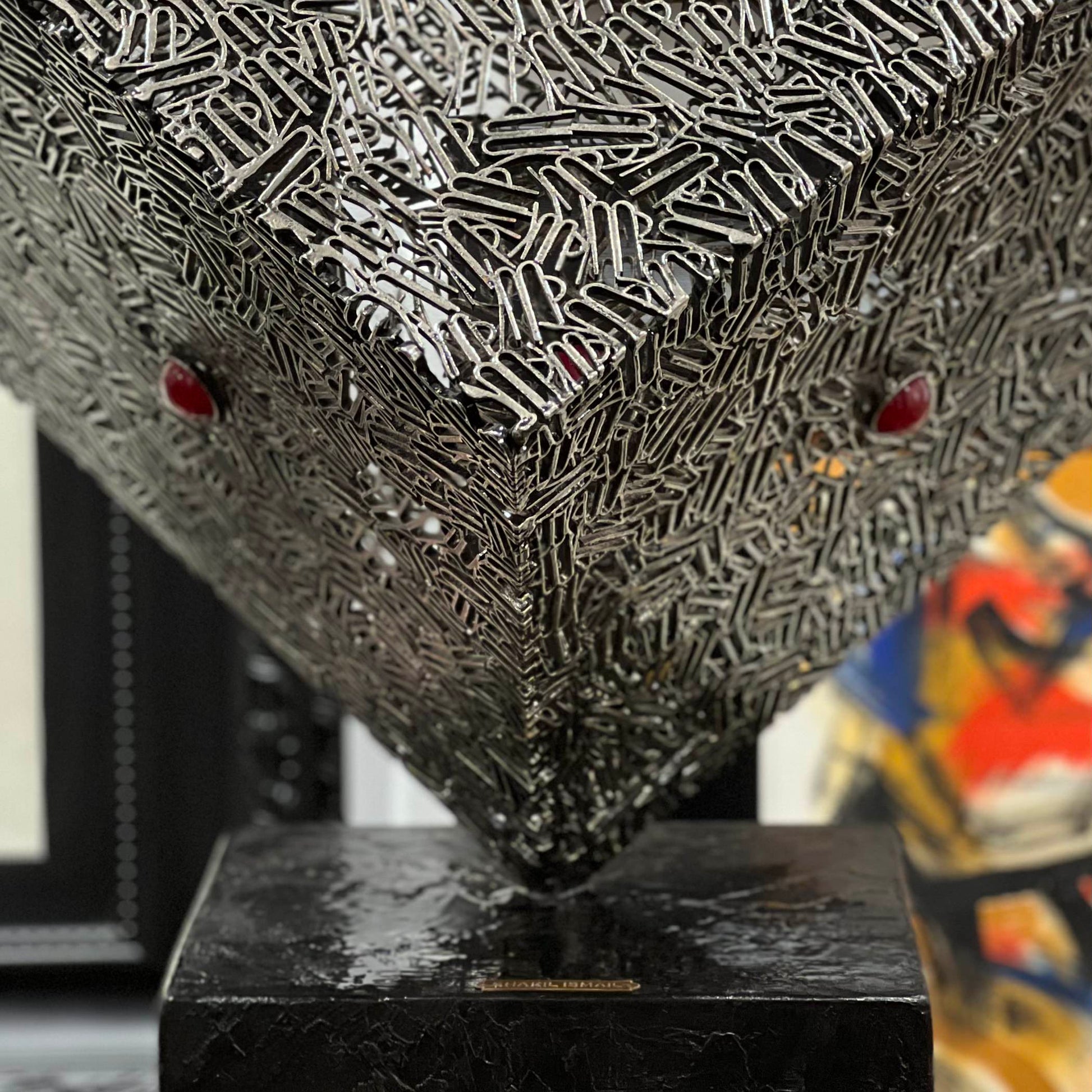 "Divine Illumination: ALLAH - Metallic Cube" invites you to experience the intersection of art and spirituality, embodying devotion and artistic brilliance. This sculpture stands as an awe-inspiring tribute to Allah's name and a testament to the unparalleled skill of Shakil Ismail.