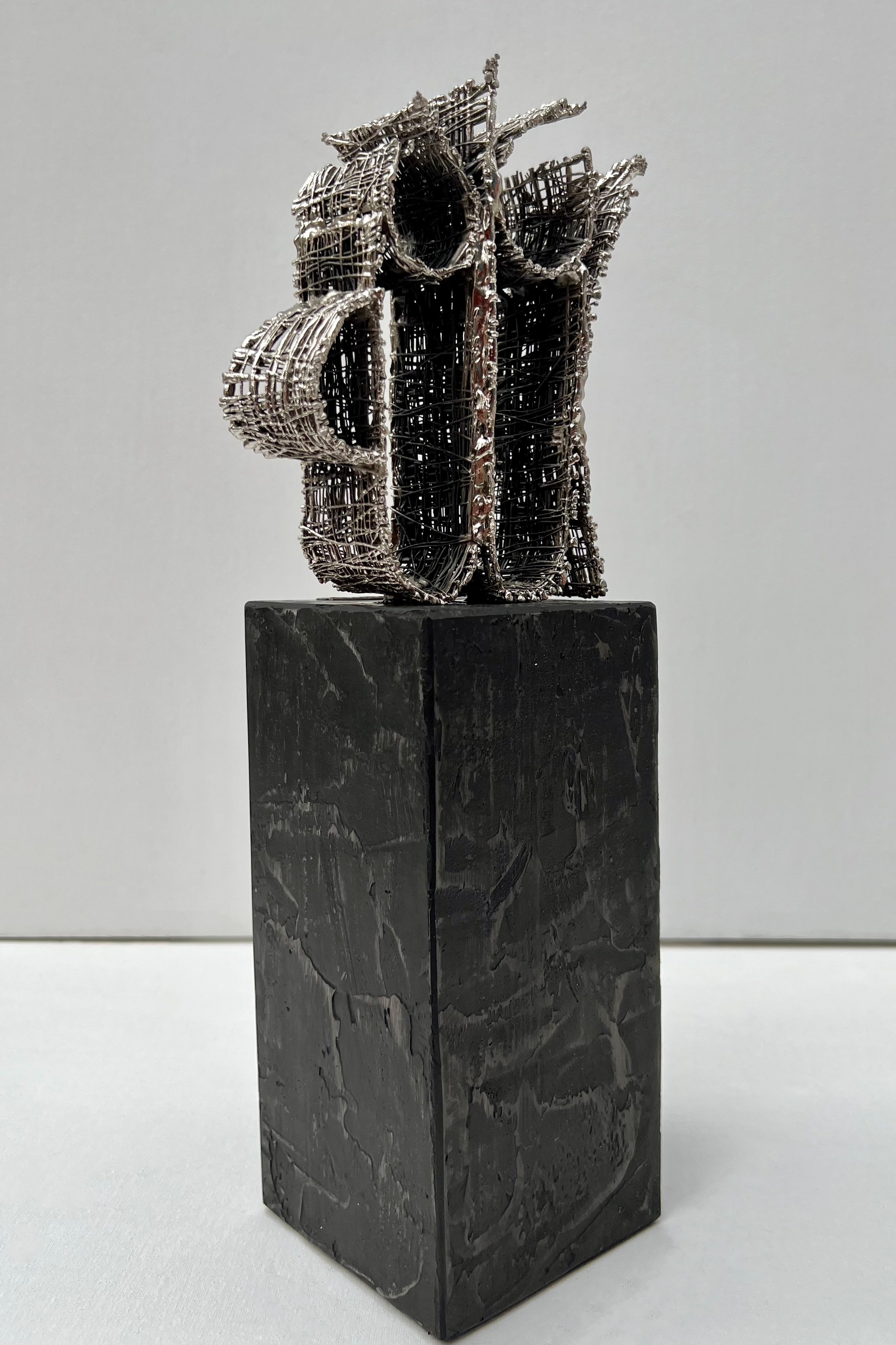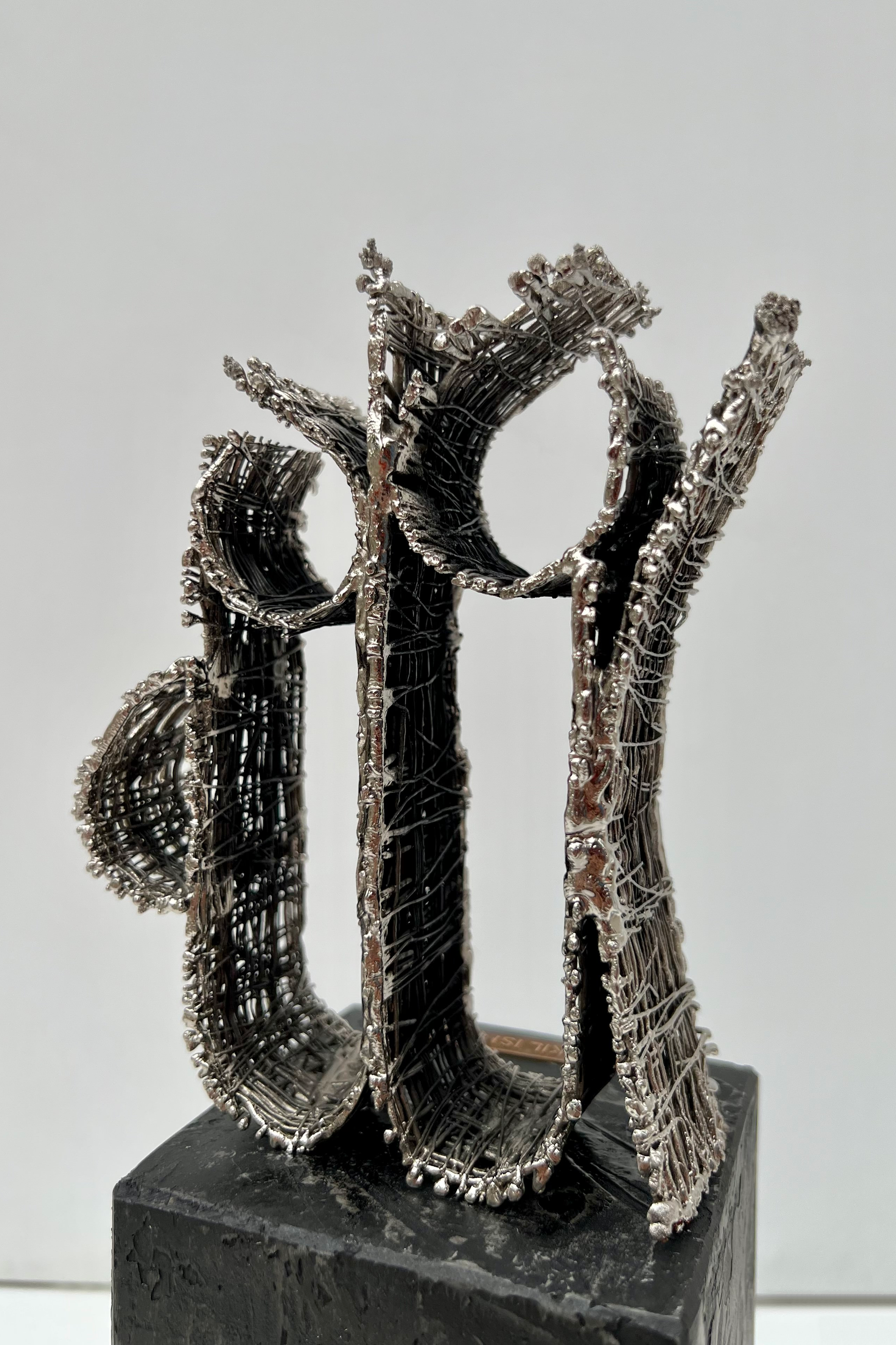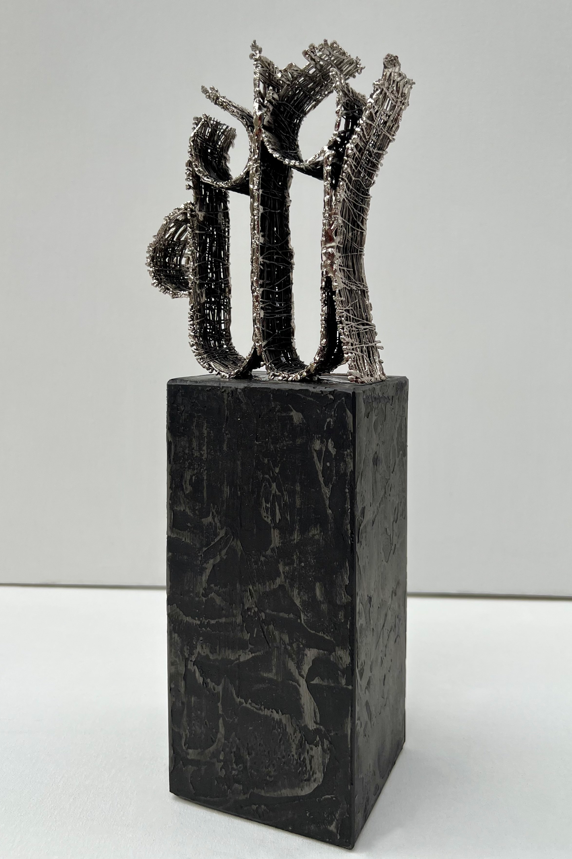 Intricately composed of delicately entwined metal wires, this sculpture intricately spells out the name "Allah," resulting in an exquisite tangle that embodies spiritual reverence. The fusion of these wires, meticulously united through the art of electroforming, evokes a sense of unity and divine interconnectedness. Set upon a wooden base, this compact yet captivating creation emanates an aura of spiritual mystique, beckoning admirers to engage with its spellbinding intricacy.