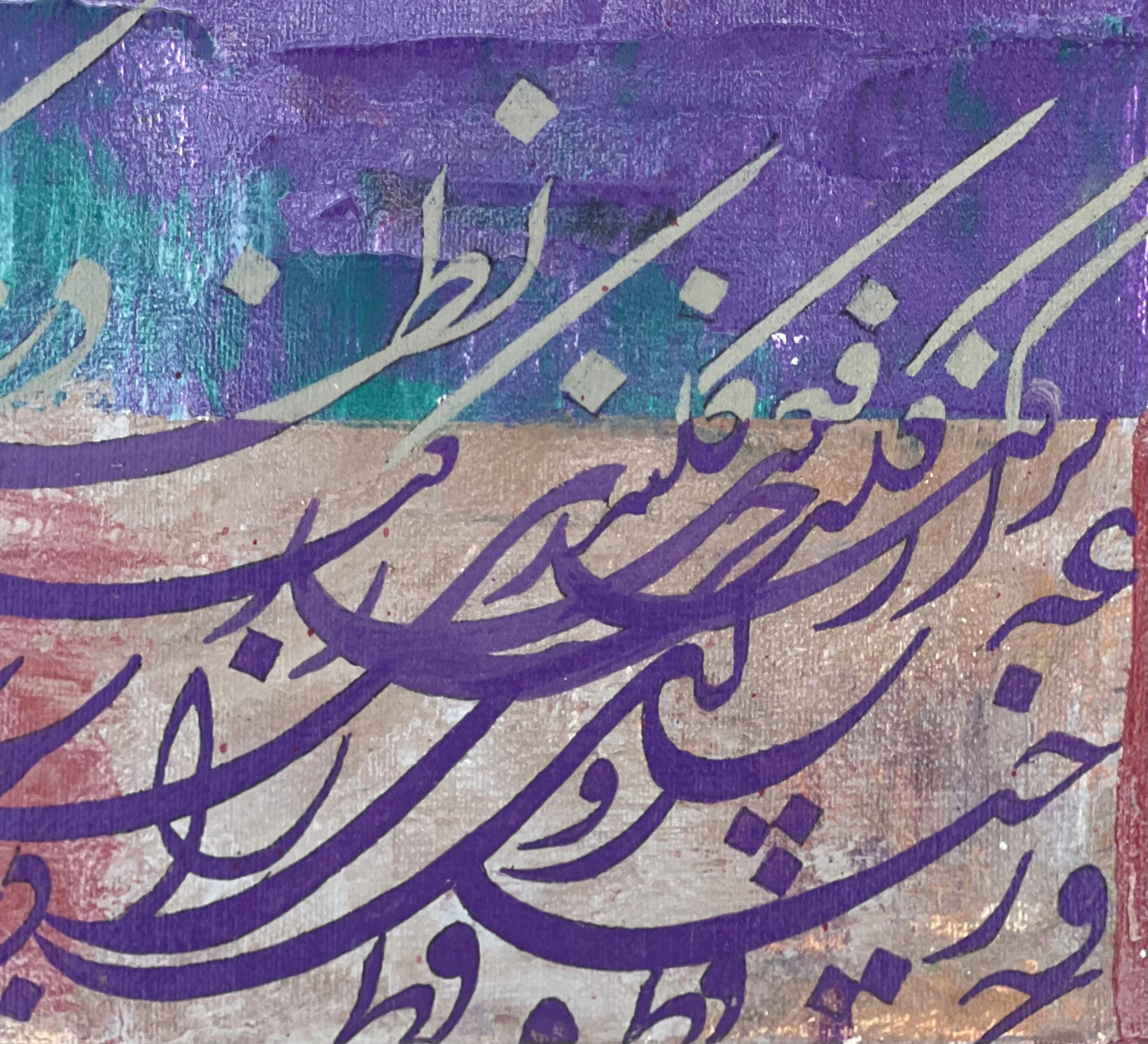 The background of the painting features the technique of mashq, or the exercise and practice of calligraphy with random letters. This adds an extra layer of depth and complexity to the work, highlighting the artist's skill and dedication to the craft.