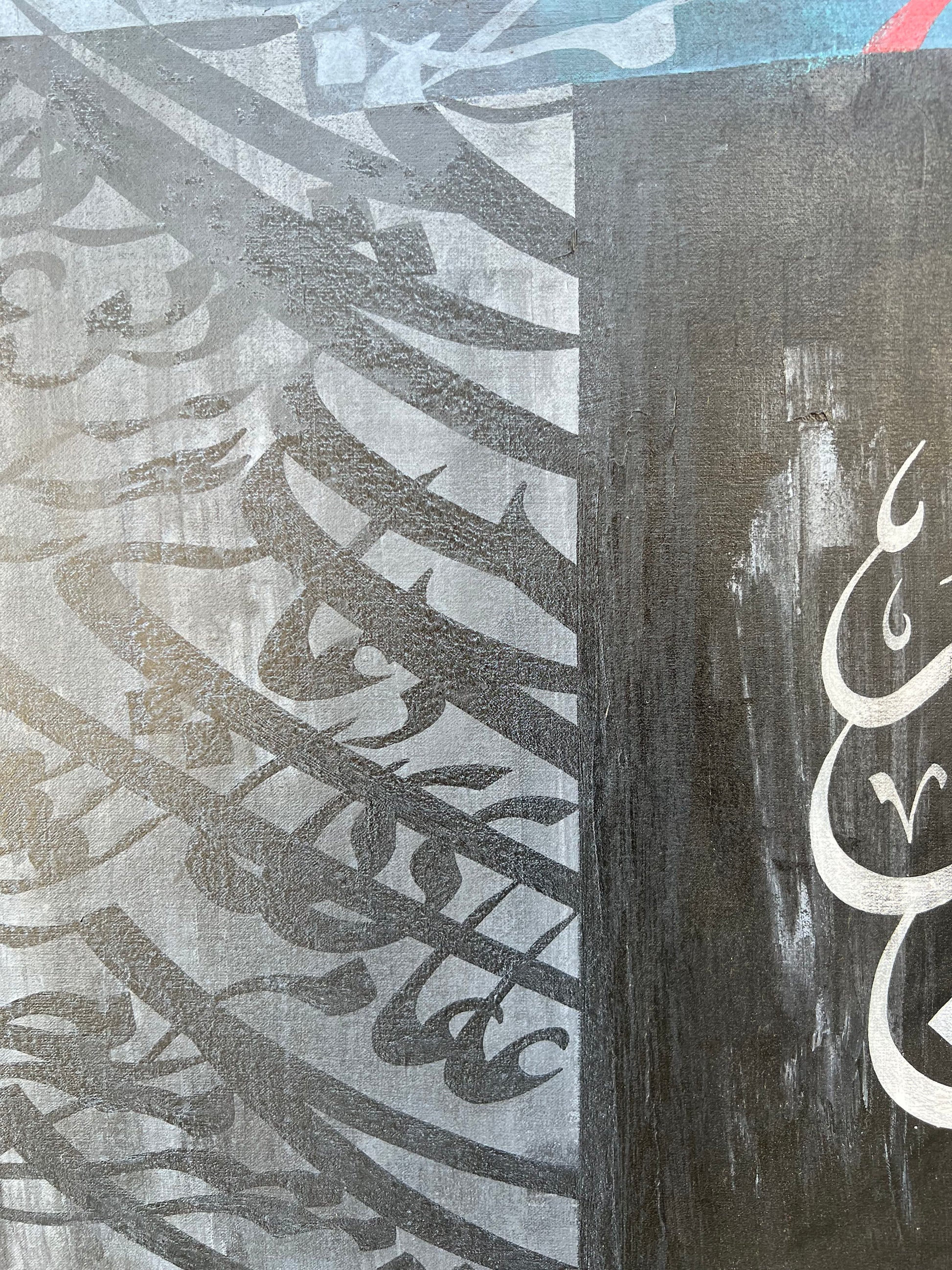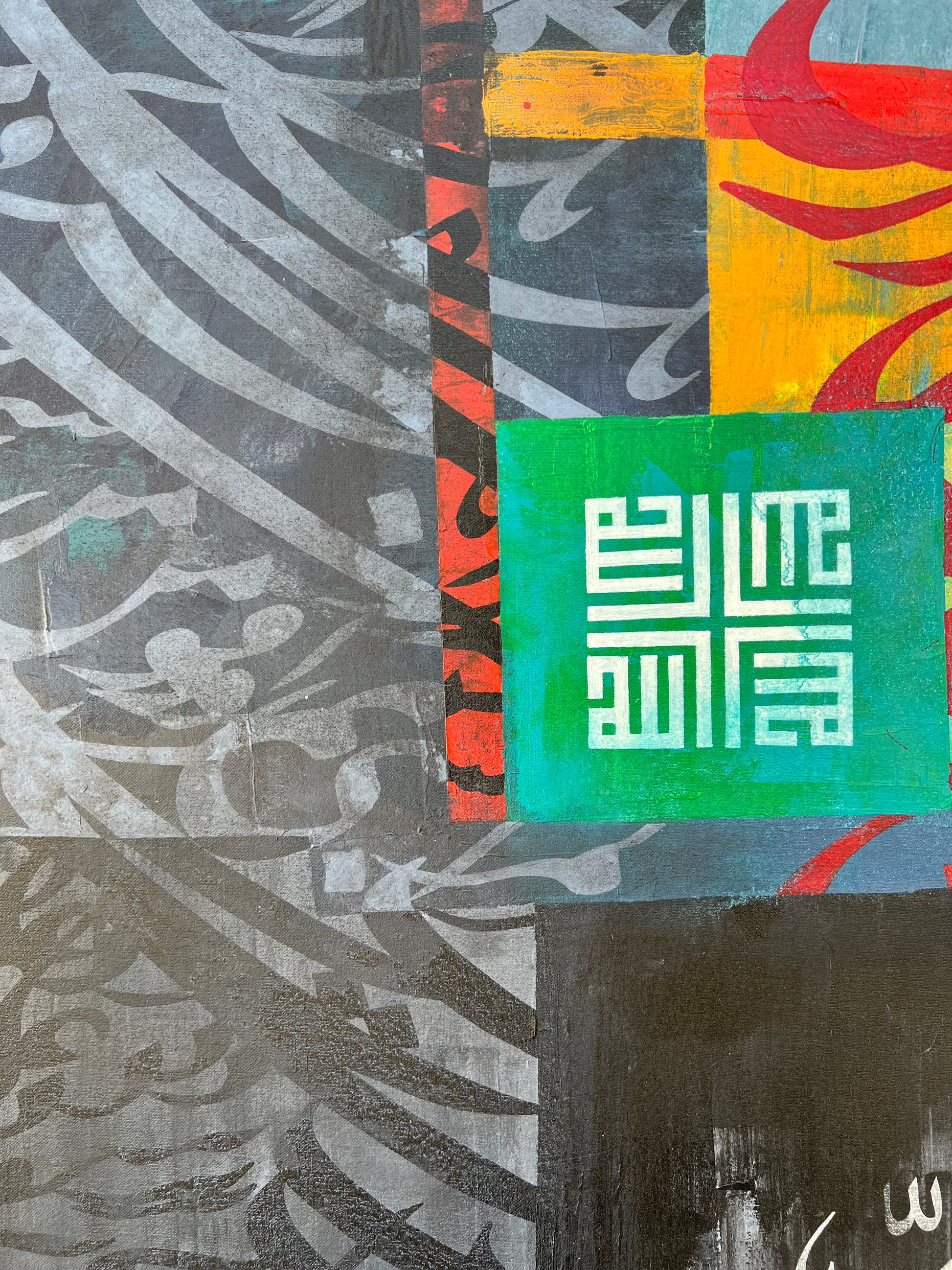 Surrounded by the delicate dance of mashq, this artwork embodies a symphony of shadows and hues. The abstract background adds an element of intrigue, drawing you into the world of devotion and artistry.