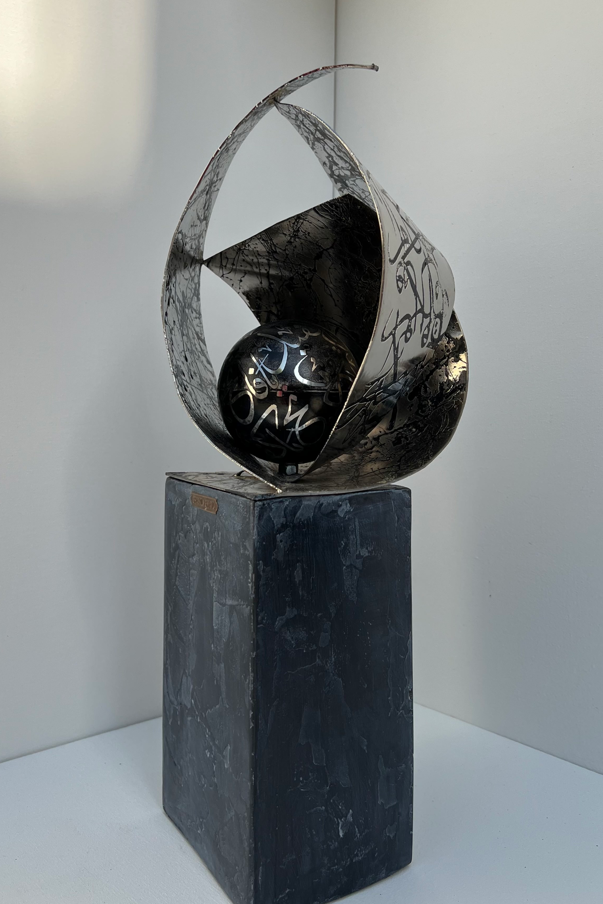 Metal Sculpture with Calligraphy Etching