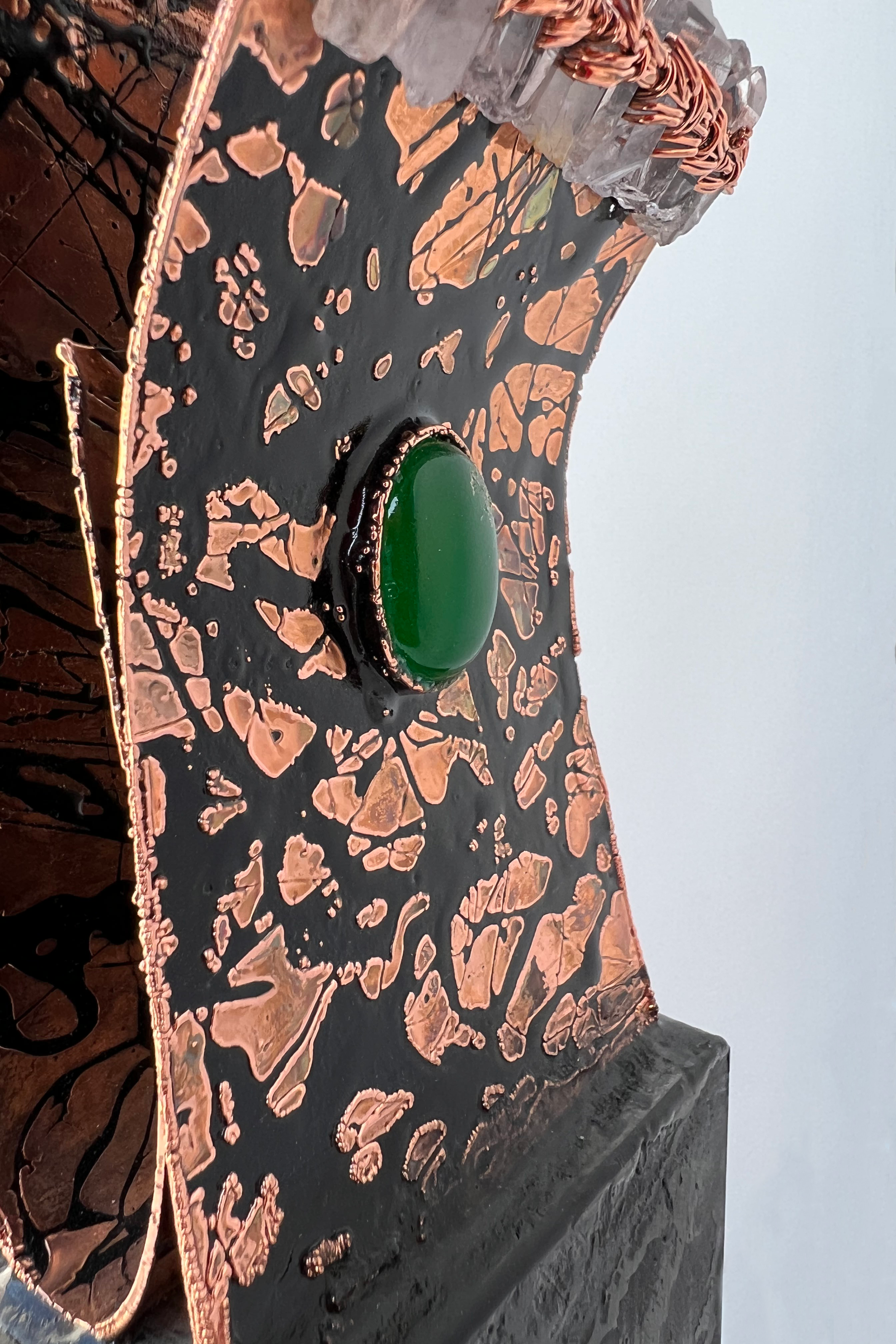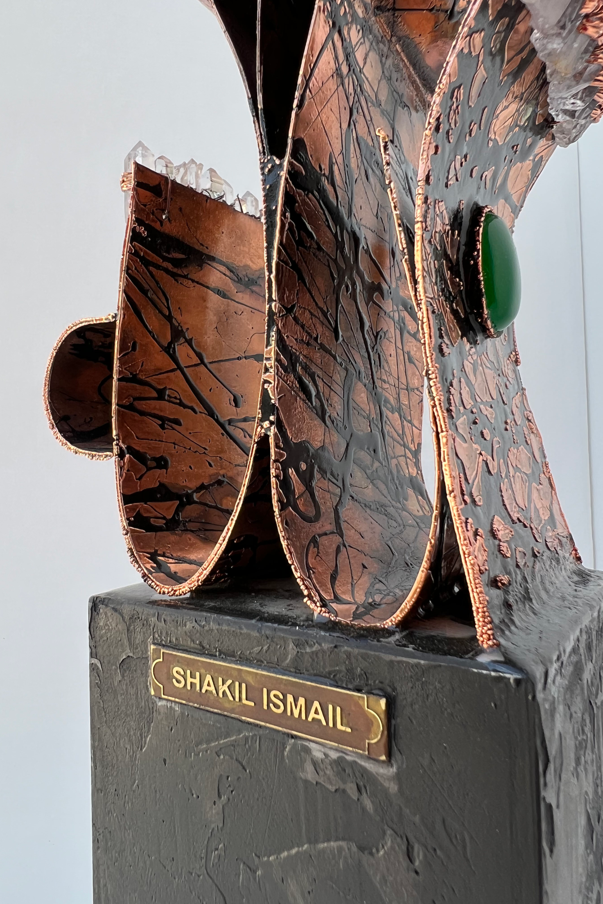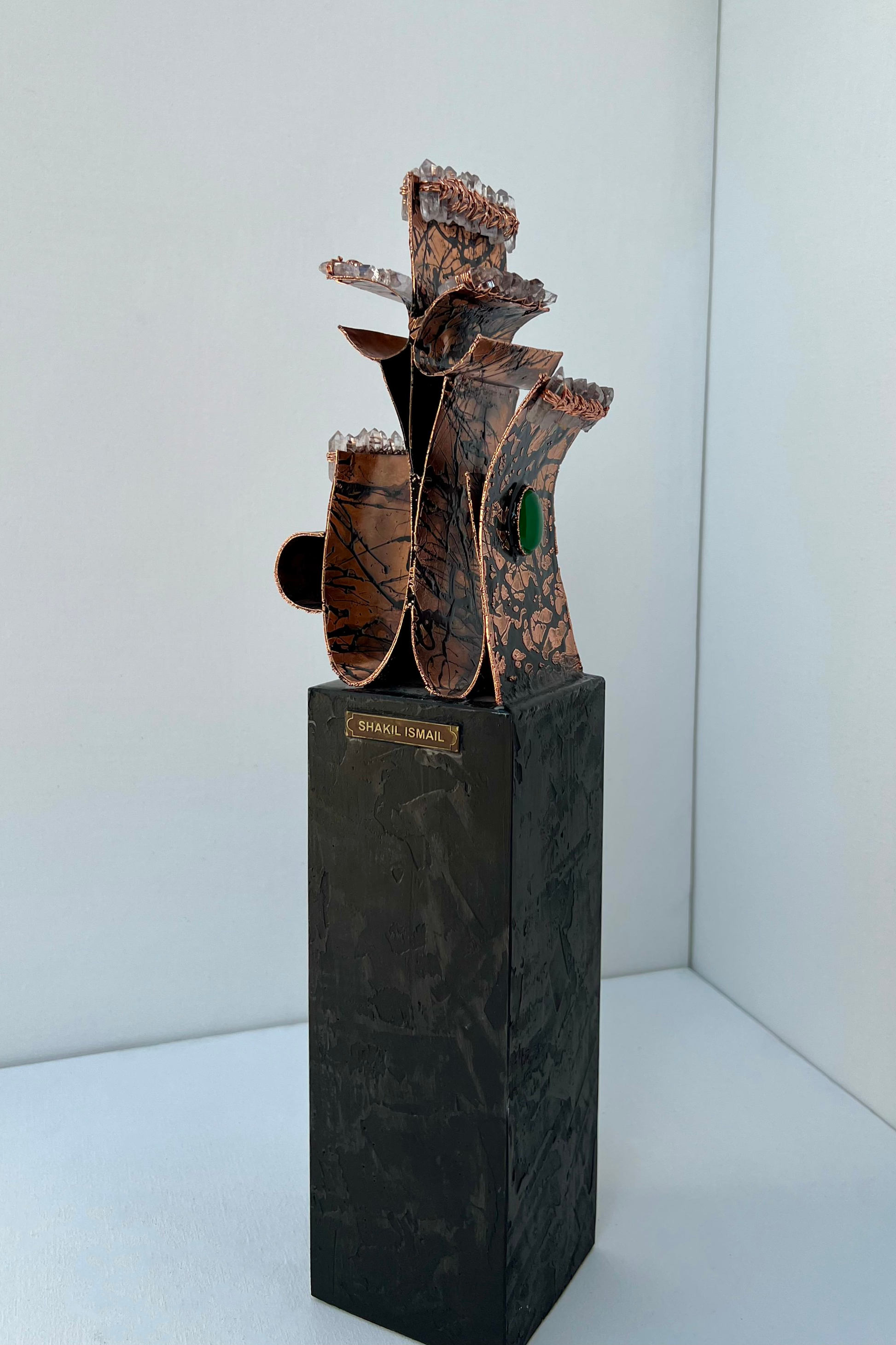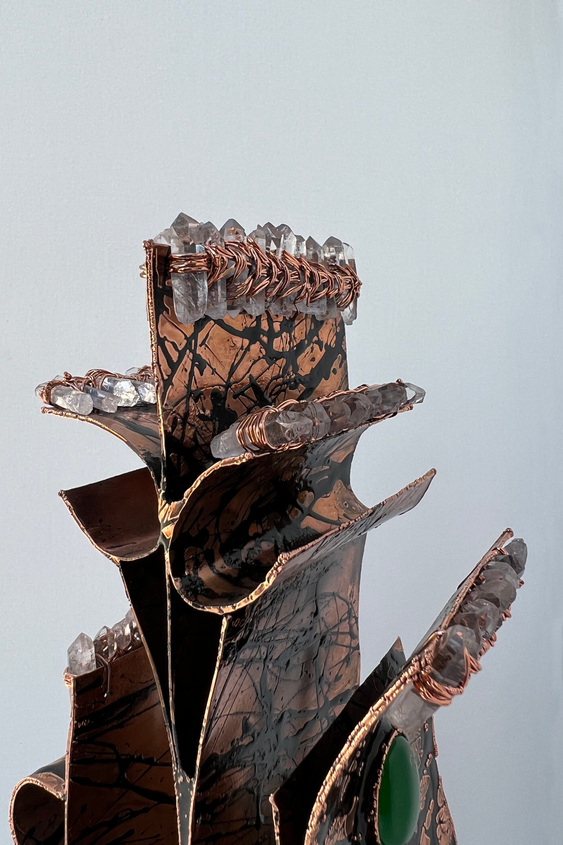 Metal Sculpture with Crystal Quartz& Agate Stone