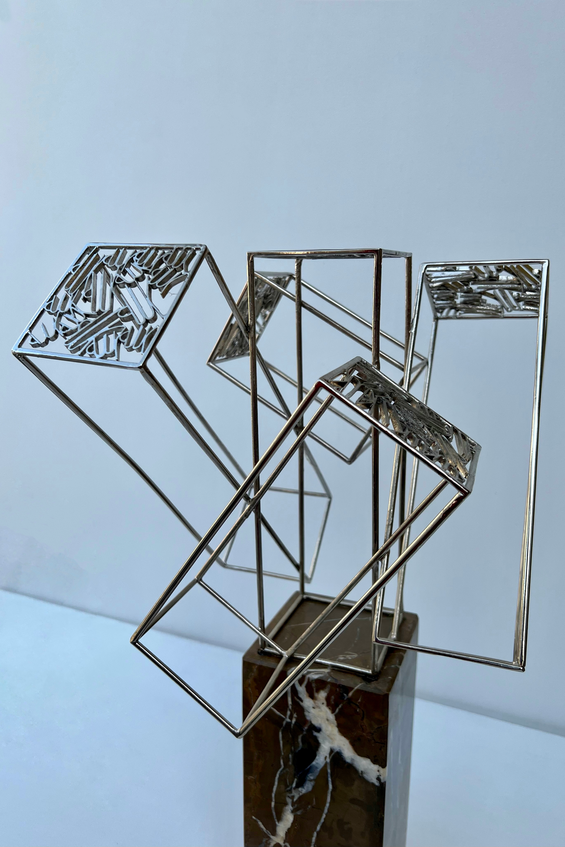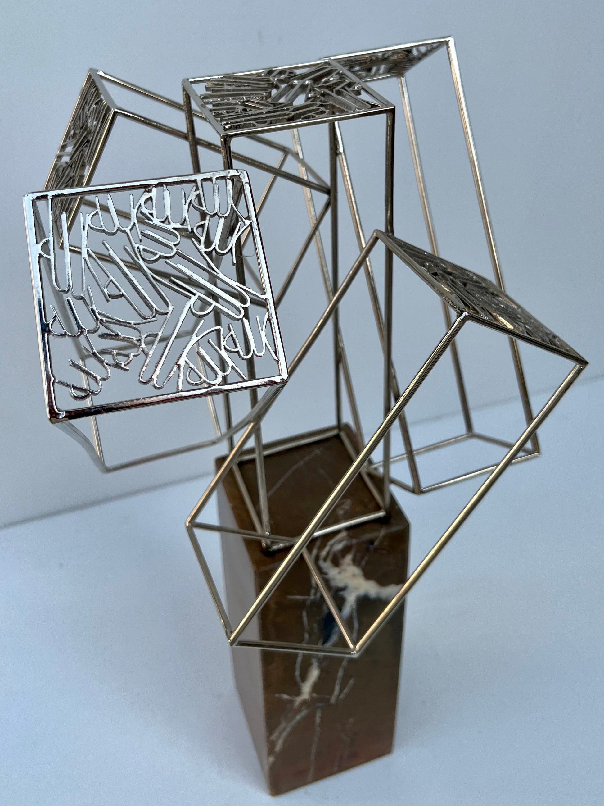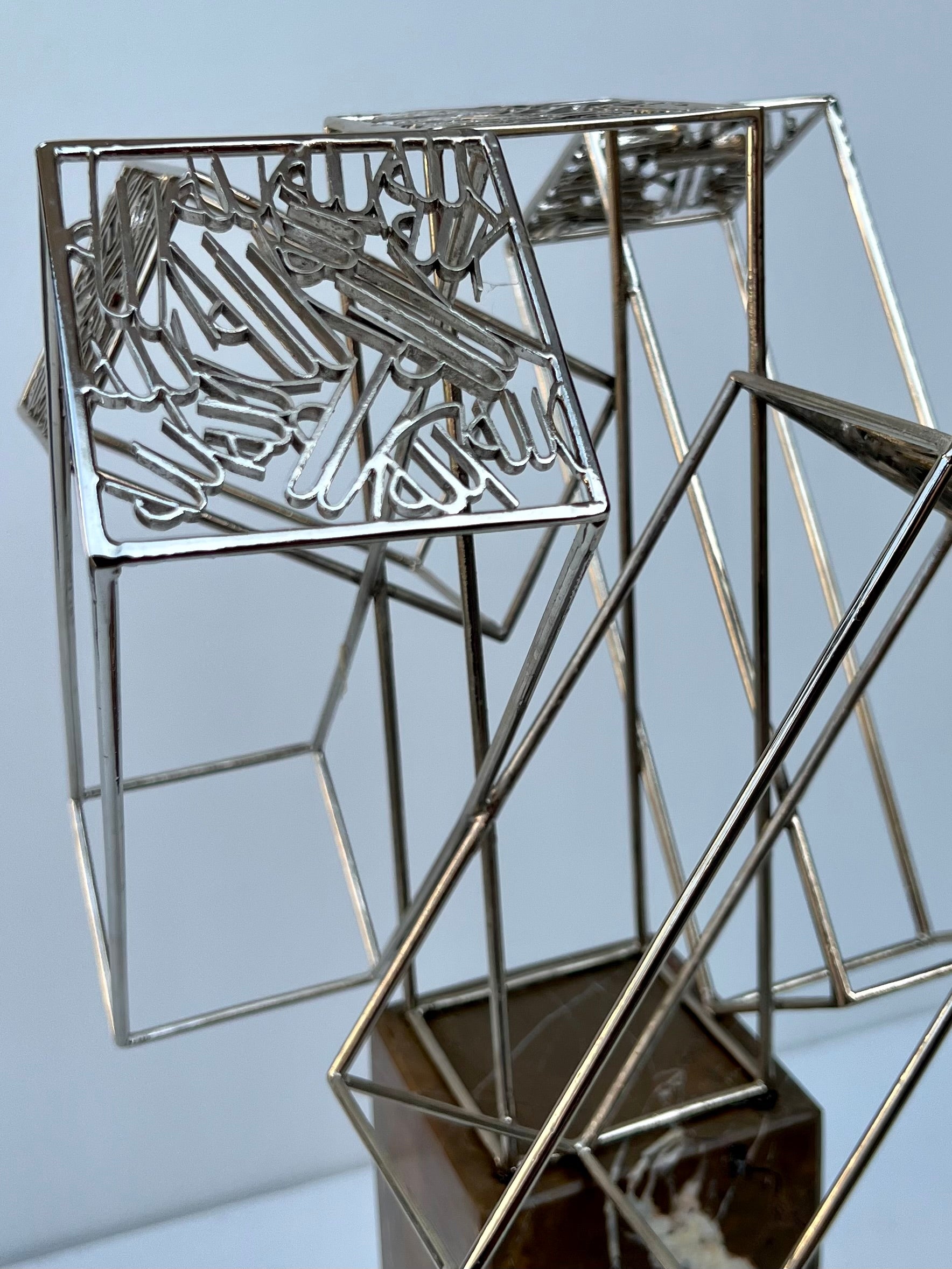 Cuboid Radiance - Metal Calligraphy Sculpture