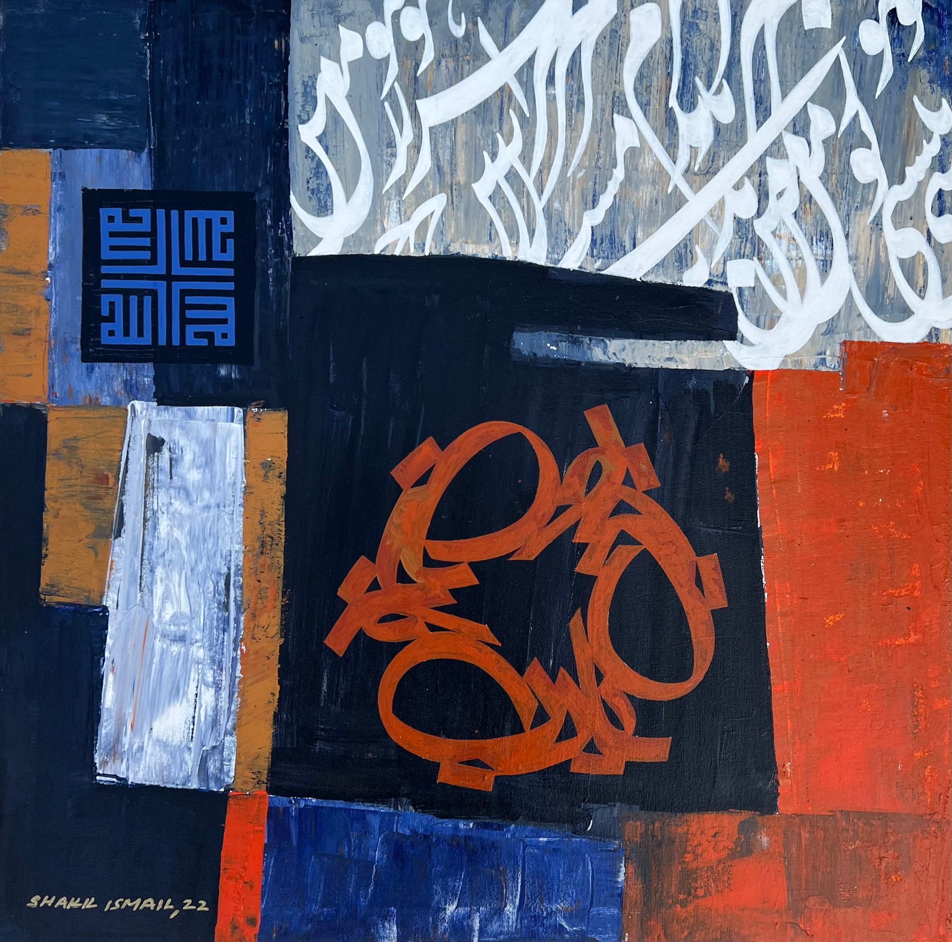 This beautiful Islamic calligraphy painting is a stunning expression of the phrase "Ya Rab," meaning "Oh Lord" in Arabic. The script is written in the Shakil Ismail's own unique style, with each letter carefully crafted and adorned with intricate details. The use of mashq, or calligraphic exercises, adds an extra layer of depth and texture to the work, showcasing the artist's skill and dedication to the craft.