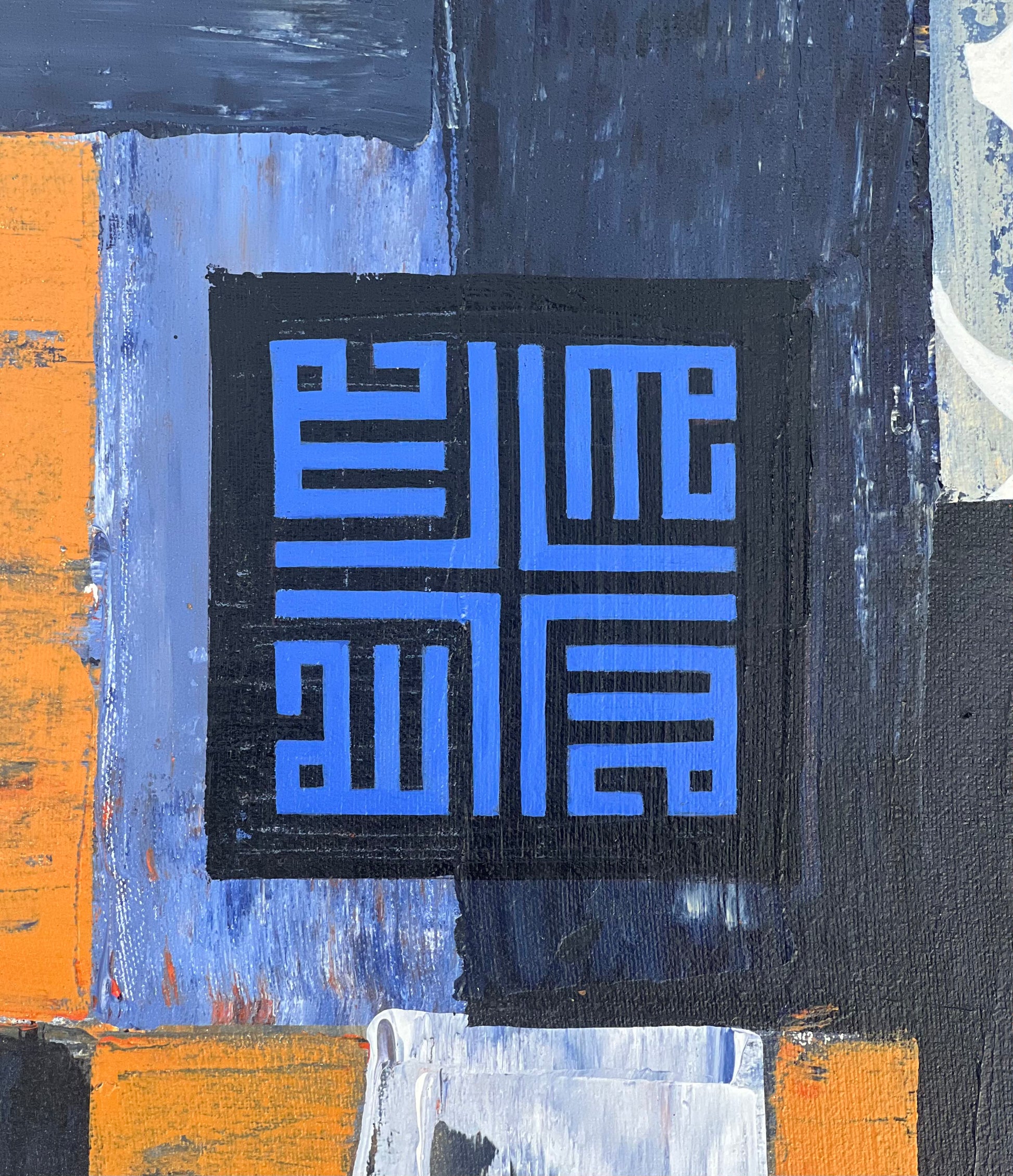 The vibrant colours used in the painting are visually striking and create a harmonious and pleasing effect. The combination of warm and cool tones creates a dynamic interplay of colour that draws the viewer's eye to the elegant curves of the script.